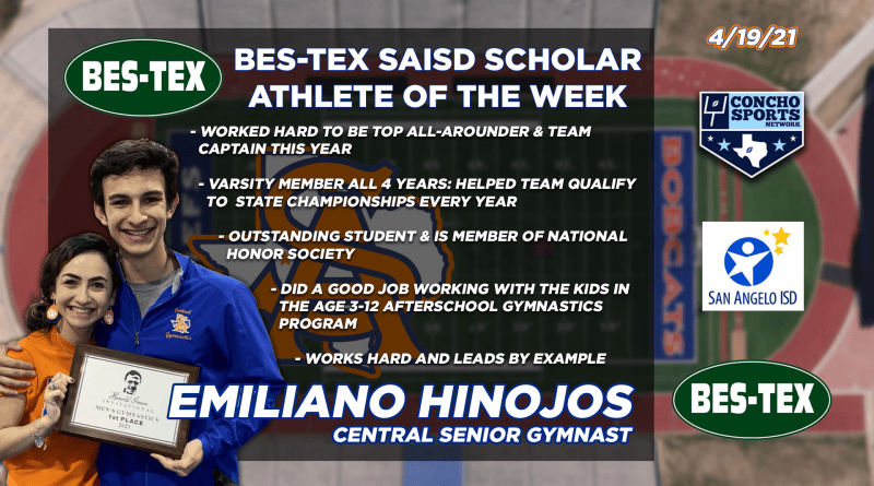 San Angelo Central gymnast Emiliano Hinojos – The BES-TEX SAISD Scholar Athlete of the Week | 4/19/21